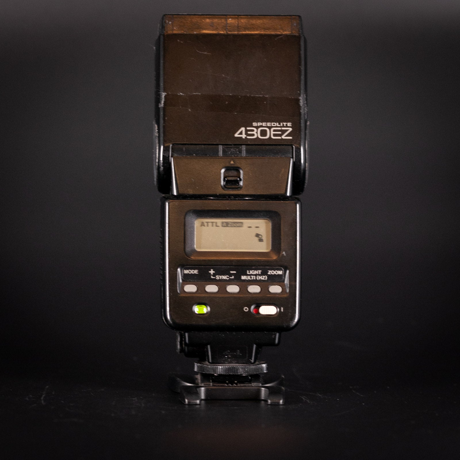 The 430EZ was Canon's mid-range flash from the film EOS era. E-TTL metering, bounce/swivel head, and plenty of power for most shooting situations.